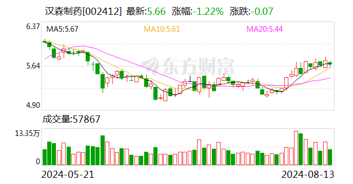 原标题:汉森制药:上半年净利润同比增长10.84%