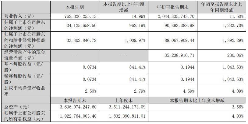 前三季度光华科技交易收入为20.44亿元,同比增长11.50%,包摄于上市公司鼓动的净利润为9039.34万元,同比增长1233.70%。其中,第三季度交易收入为7.62亿元,同比增长14.99%,包摄于上市公司鼓动的净利润为3412.57万元,同比增长962.19%。