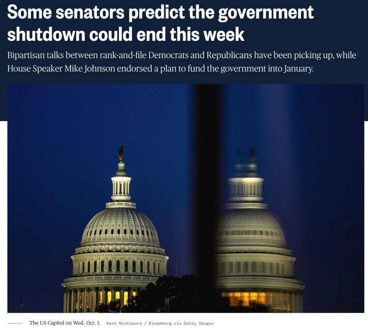 △NBC报谈,有磋磨员瞻望,政府“关门”有可能本周扫尾