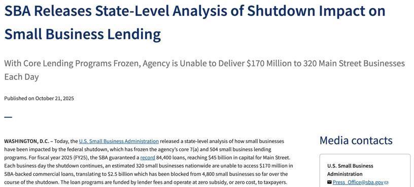 △好意思国小企业照顾局(SBA)网站注销分析陈诉,弘扬政府“停摆”对小企业的影响